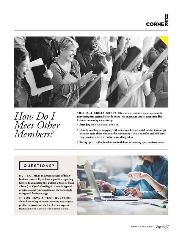 Her Corner is an education-based company committed to helping women grow their businesses.